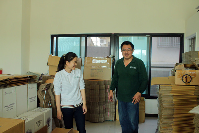門市改裝的時間表確認後,告示牌貼在玻璃窗前,開始一一打包、裝箱。為了縮短工程時間且不耽誤營運,特別請同仁今天來加班打包搬遷。