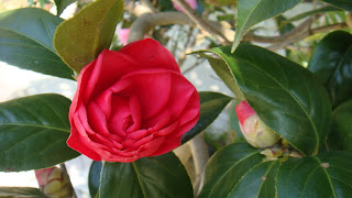 我最喜歡的茶花,在這裡也看到兩株。自從被金庸小說"天龍八部"洗禮過後,對於大理國茶花有無與倫比的嚮往。雖至今無緣到雲南大理看茶花,但踏遍台灣溪頭、杉林溪、武陵農場等地的足跡,常常只是想多欣賞這翩翩風采、無尚魅力的花朵。
