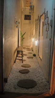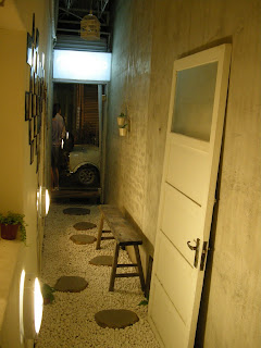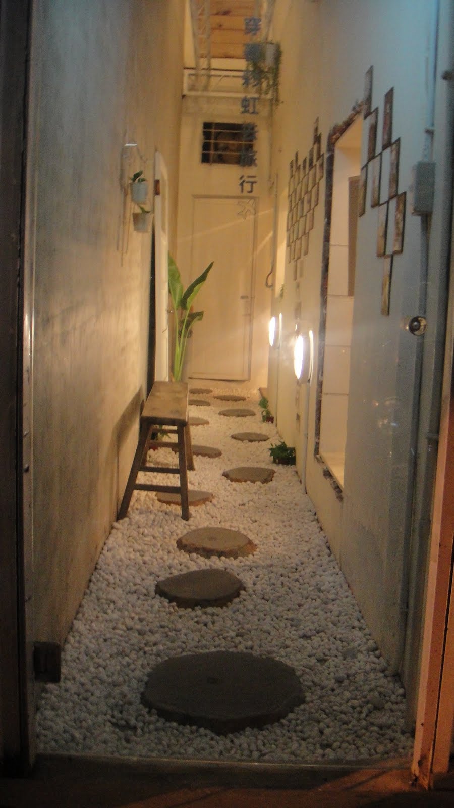 門市的佈置處處充滿了主人的巧思與心意。第一次到達訪當晚找了許久,因為傳統的門牌不見了,正面的玻璃門店招牌也不易辨識,左邊側門很像一條巷弄,門上才清楚地將顯現出店名。Erik解釋說,就是希望客人從側門的巷弄走進來,體驗一下老宅規劃巧思及自在的心意。走在巷內,地上鋪的是白色碎石子,牆上妝點許多風格生活照,最特別的是,右牆還特地打洞,可以往內看到店內的陳設,相當具有新意。
