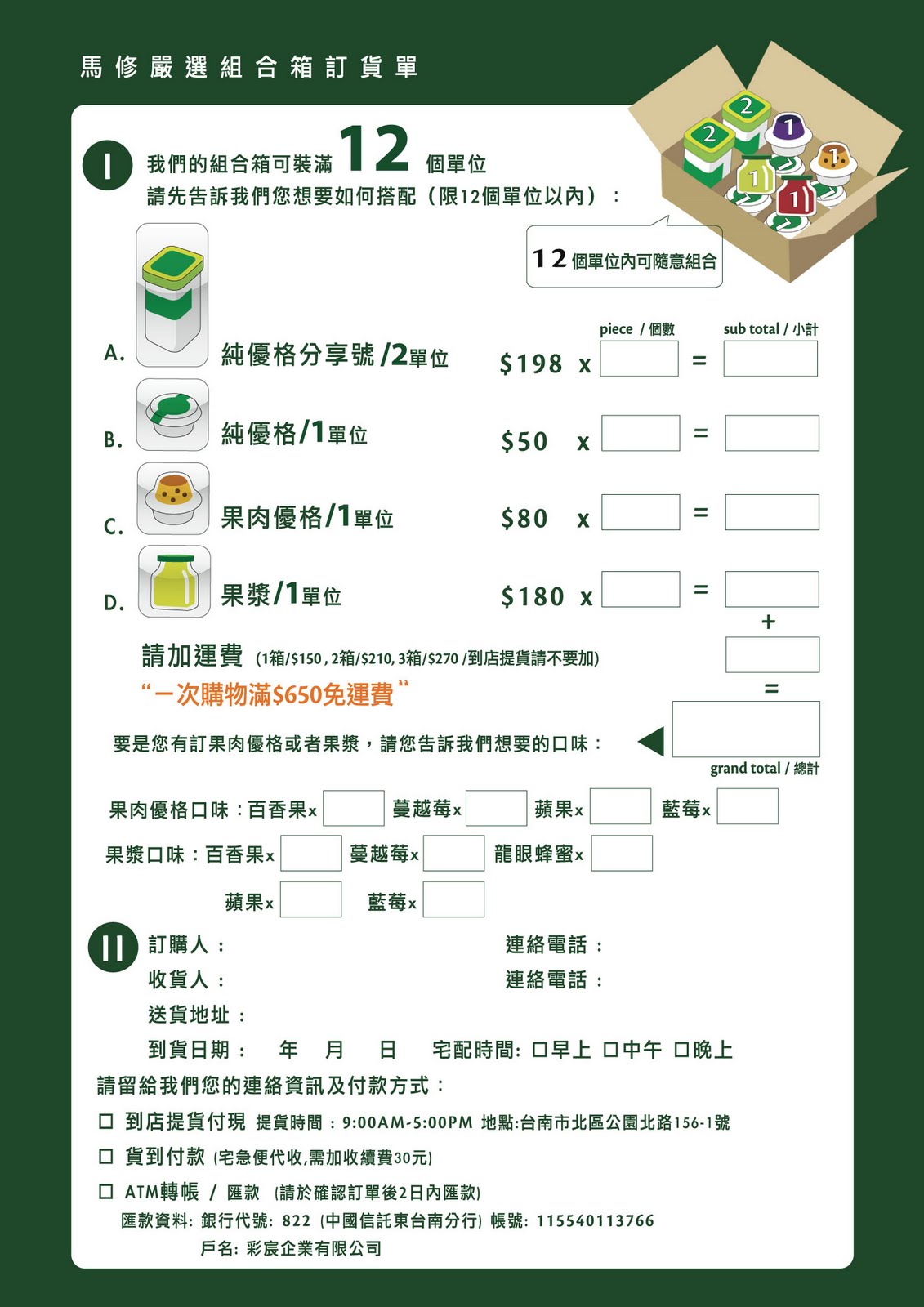幾天的運行,將免運費的門檻降低以後,網路的訂單逐漸增加。看到中北部的朋友,再次可以用簡單的方式收到馬修嚴選的商品時,自己才發現,當初要落實優格生活的理念又往前邁出一大步,就好像吳寶春師傅展開自有店面落實理念是一樣的開心。