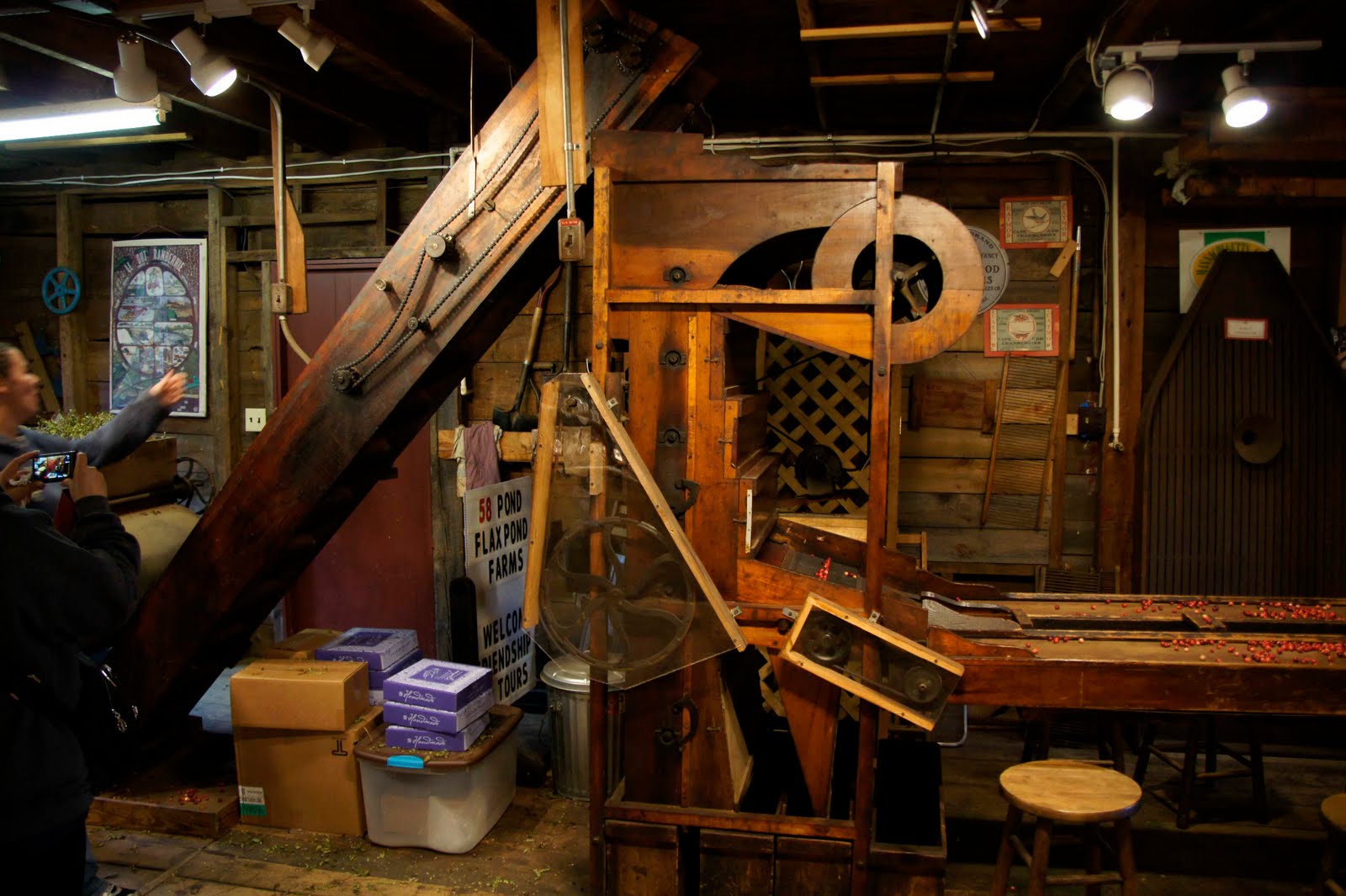 這一張就更清楚地可以呈現,篩選過後的蔓越莓果實裝箱的過程。