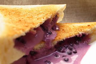 優格混合果漿,裹在烤過土司中,其是藍莓或是蔓越莓果漿混搭優格,無論在視覺上或是口味上均屬上乘。尤其藍莓具有高量的花青素,是維護視力優質水果。
