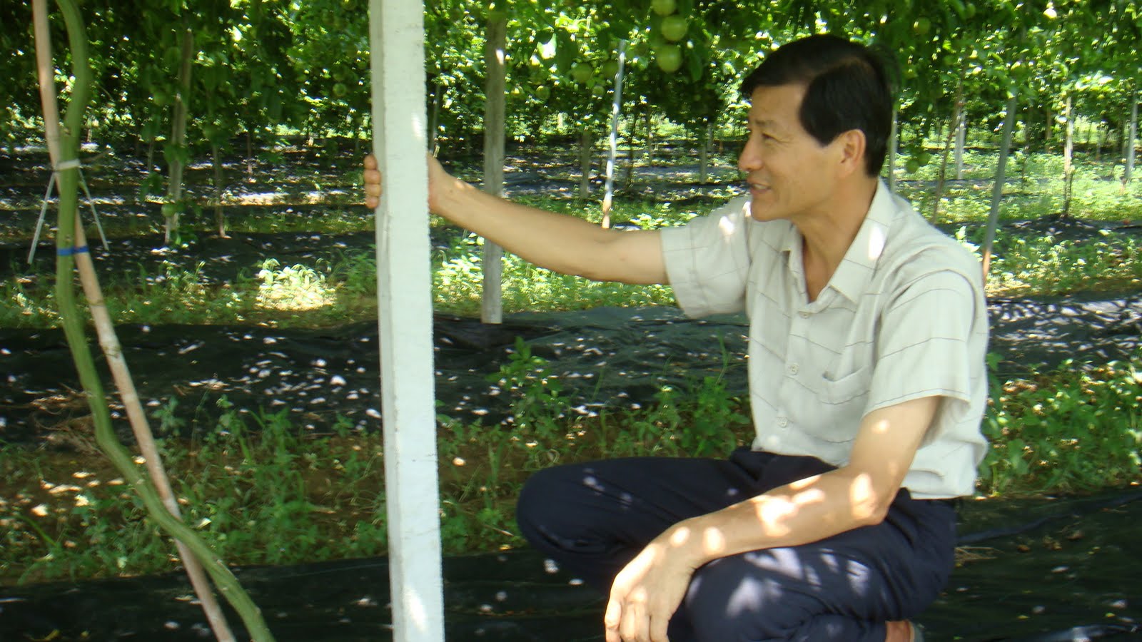 照片上的主人翁就是張永晉先生。他以前是連結車司機,退休後,自己一個人住在園區裡,種植百香果及鳳梨,林學長外銷歐洲當做醫療外用的鳳梨酵素就是採用張先生的有機鳳梨做的。改天我們再來介紹有機鳳梨。