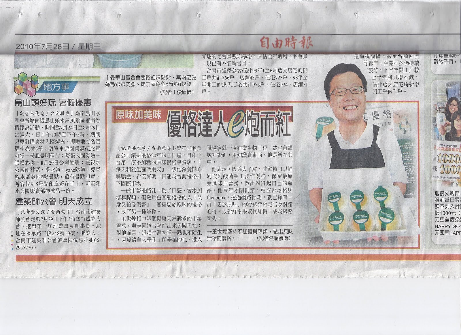 馬修嚴選成立至今,很幸運地受到許多媒體的推薦。今天自由時報台南版特別報導自己想做這個優格事業的想法及作法。雖然還引來國稅局打電話來說要買,一度我還以為國稅局要來關切營業狀況,不過因為報導內容都沒有出現任何馬修嚴選的字眼,只有出現本人的全名,所以可能許多看到報導的人,還要花許多時間才能夠在網路上找得到吧!不過還勢將這個好消息分享給大家。