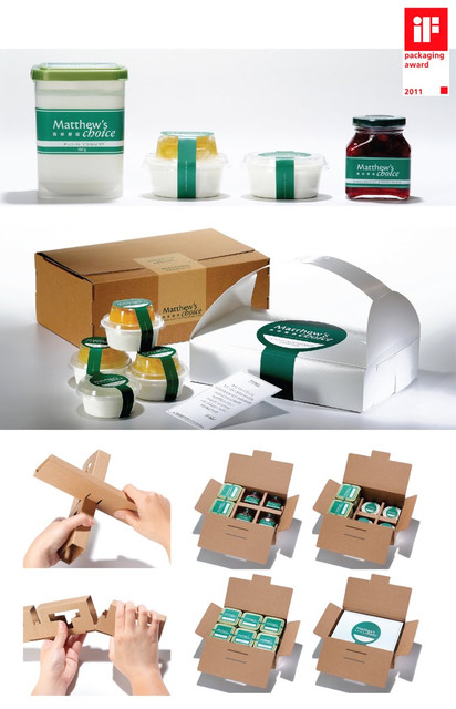 我們認為台灣在地的食物包裝,不見得一定要用本土元素來呈現。所以我們只用代表永續、健康的深綠色並以英文為主視覺呈現品牌識別,在落實永續環境的精神下,採用不需砍樹、不浪費水的石頭紙作為包裝材料,單色印刷、盡量不黏貼,外箱中間設計手摺的隔板保護產品以免配送中損壞。分享號優格的空盒採方形不佔空間的保鮮盒充填,食用後可再利用或回填,讓容器不單只是容器。水果優格果肉與優格間的縫合,一樣採用石頭紙上下環扣,不浪費太多包裝資源,這也是我們對節能減碳盡的心力。